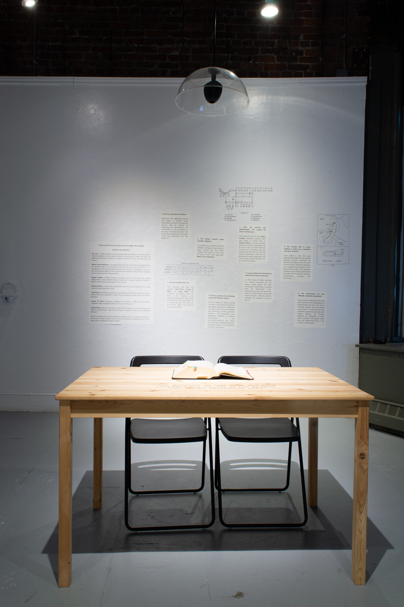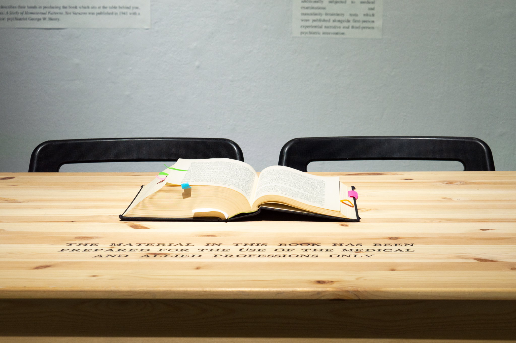 This audio-based participatory installation takes stock of a 1941 medical publication titled Sex Variants: A Study of Homosexual Patterns. Through telling the story of the book’s production, the work highlights the role of power and co-op- tion in the institutionaliza- tion of community-based knowledge. By having my dear transfemme friends read aloud the first per- son narrative of “research subjects,” we bring to the fore their bravery, hones- ty, and learned skills in navigating a world where sex deviating from the heterosexual norm was criminalised, despite their crystallisation in a printed text which sought to objectify them to the gaze of medicine and eugenics.